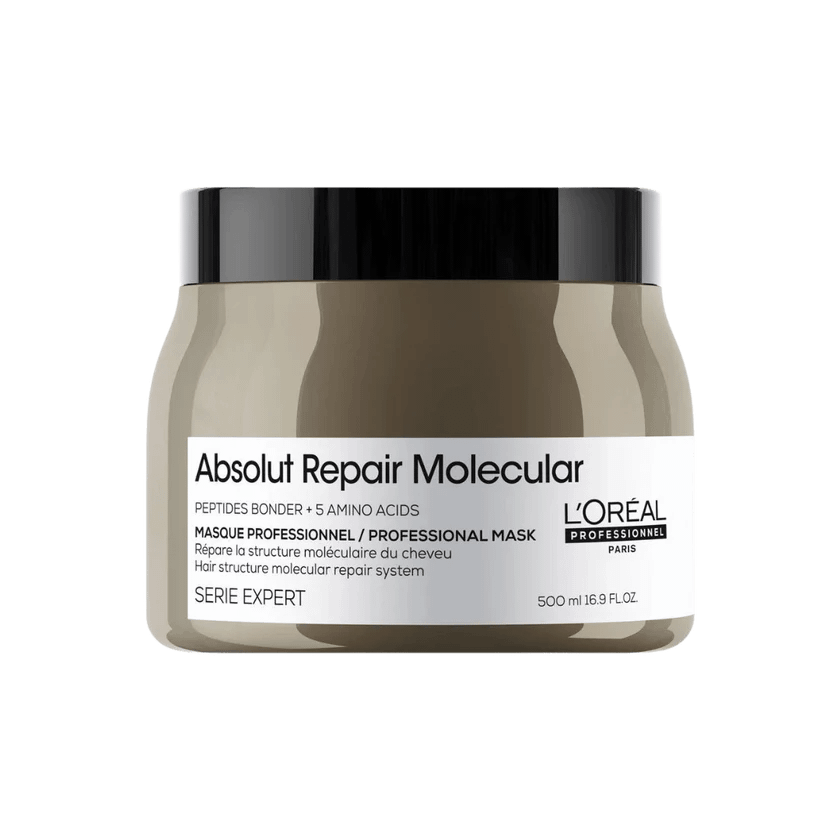 L’Oréal Professionnel Absolut Repair Molecular plaukų kaukė 500 ml – tai profesionali intensyviai atkuriamoji plaukų kaukė, skirta labai pažeistiems, silpniems, dažytiems ar šviesintiems plaukams. Pažangi molekulinė technologija padeda atkurti plaukų struktūrą iš vidaus, stiprina plaukus ir suteikia jiems glotnumo bei žvilgesio.