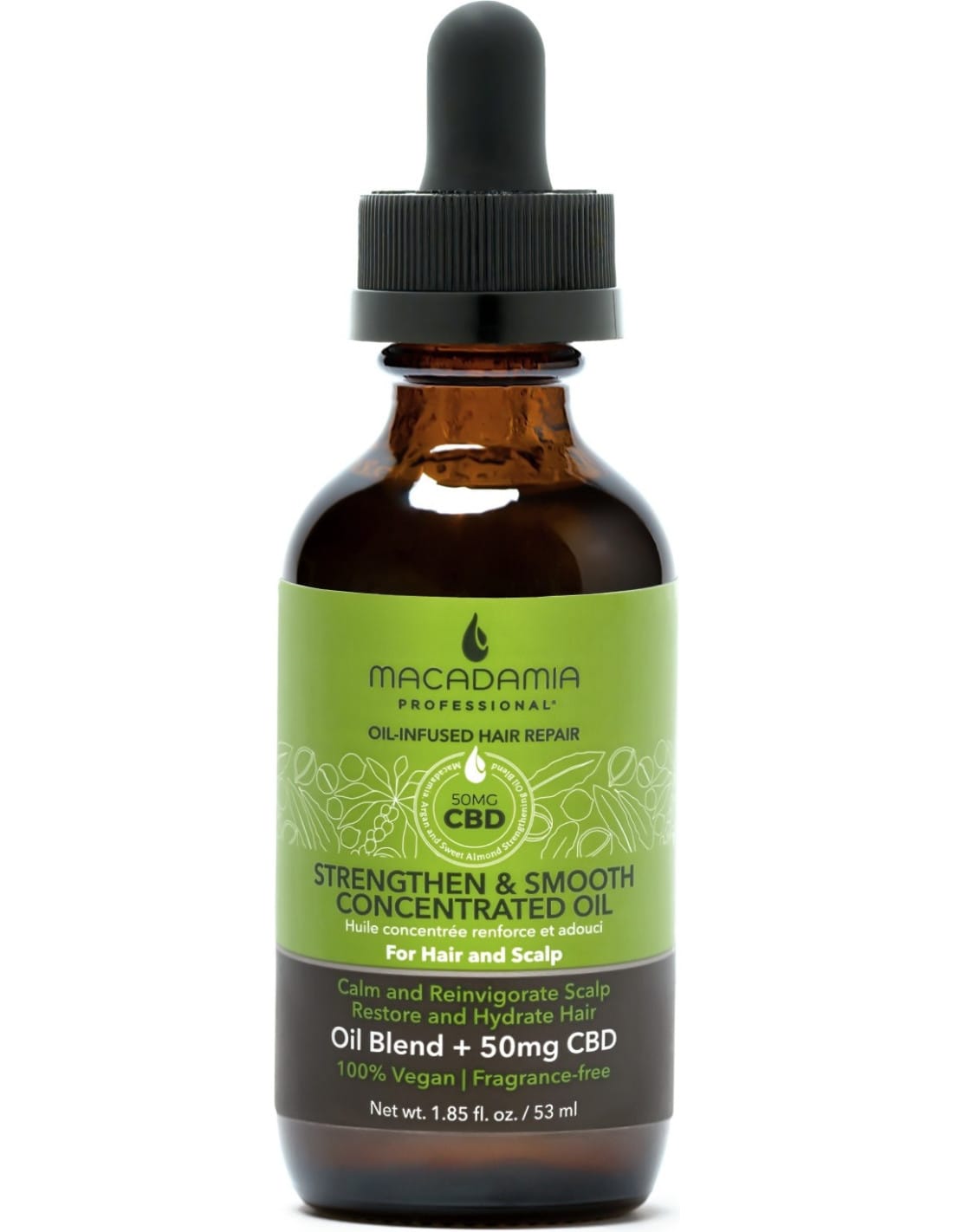 Daugiafunkcinis Macadamia Professional stiprinantis ir glotninantis koncentruotas aliejus – tai universali priemonė, skirta tiek plaukams, tiek galvos odai. Šis 100 % veganiškas aliejus ramina, maitina ir stiprina plaukus, suteikdamas jiems šilkinio glotnumo bei intensyvų žvilgesį. Jį galima naudoti kaip atskirą gydomąją priemonę arba maišyti su šampūnu, kondicionieriumi ar formavimo produktais, kad suteiktų papildomos drėgmės ir apsaugos. Aliejus padeda suvaldyti pasišiaušusius plaukus, pagerina jų elastingumą, stiprumą ir apsaugo nuo žalingų aplinkos veiksnių.