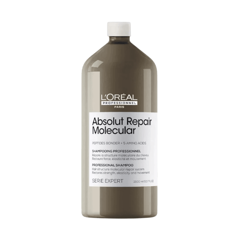 L’Oréal Professionnel Absolut Repair Molecular šampūnas pažeistiems plaukams 1500 ml – tai profesionalus atkuriamasis šampūnas, sukurtas intensyviai pažeistiems, silpniems ir cheminio poveikio paveiktiems plaukams. Šampūnas švelniai valo plaukus ir galvos odą, tuo pačiu padėdamas atkurti plaukų struktūrą ir stiprinti plaukus iš vidaus.